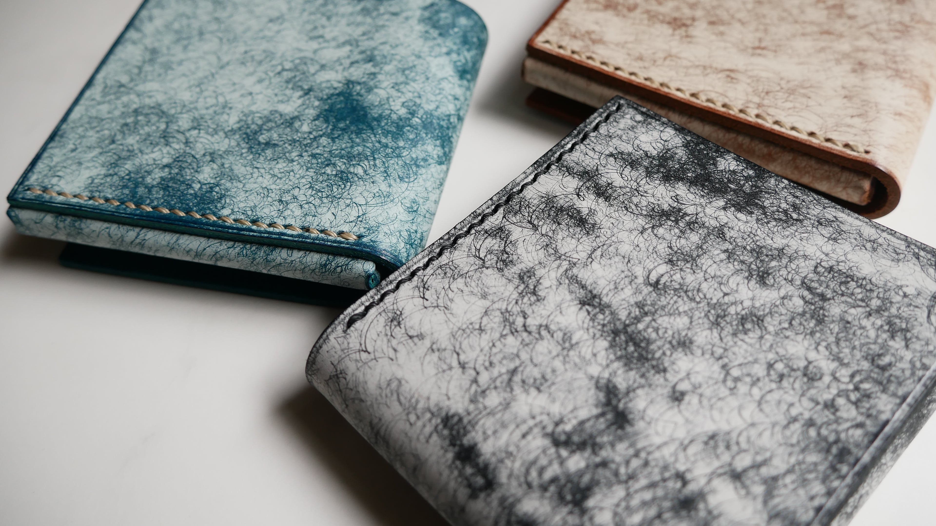 しっかりとオイルを含んだ革にワックスを乗せた後、スクラッチ加工を施す事で生まれるその名の通りfog(霧)に包まれたような見た目が神秘的な革です。