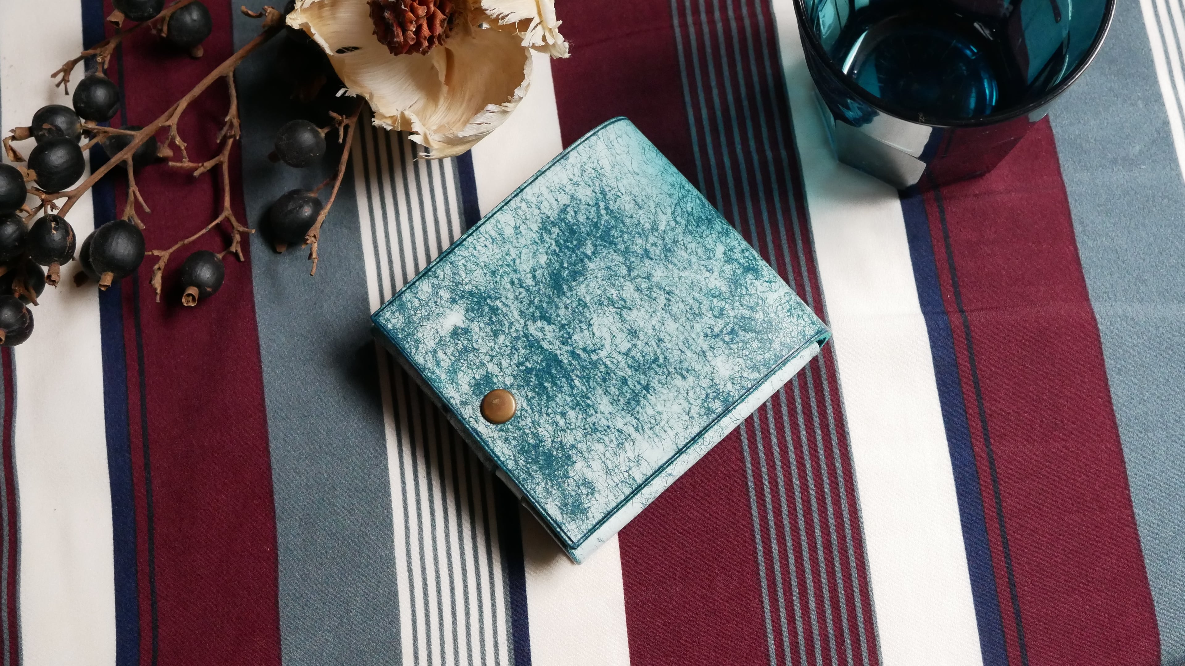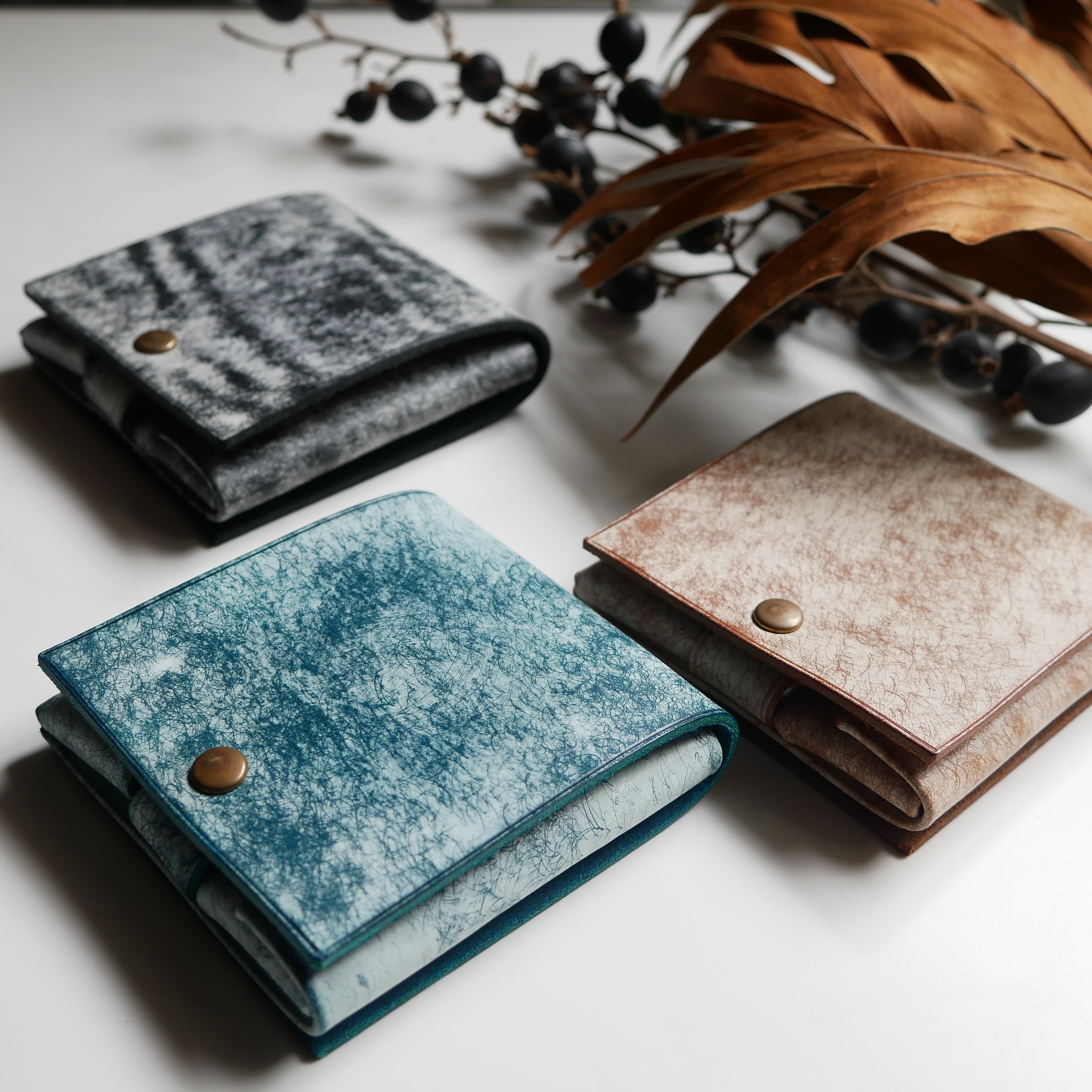 約0.9mm厚という、極薄革の貼り合わせにより実現した「薄くて強く高品質」まさにミニ財布の理想型【S】