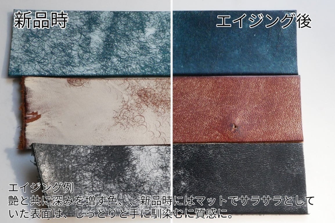 ※ハンドメイド、天然素材という性質上、製作上ついてしまう細かな傷やスレ、糸処理の痕、革の個体差、牛が生きていた頃の傷跡やしわ、虫刺されの痕、色ムラ等が見られる場合がございます。
